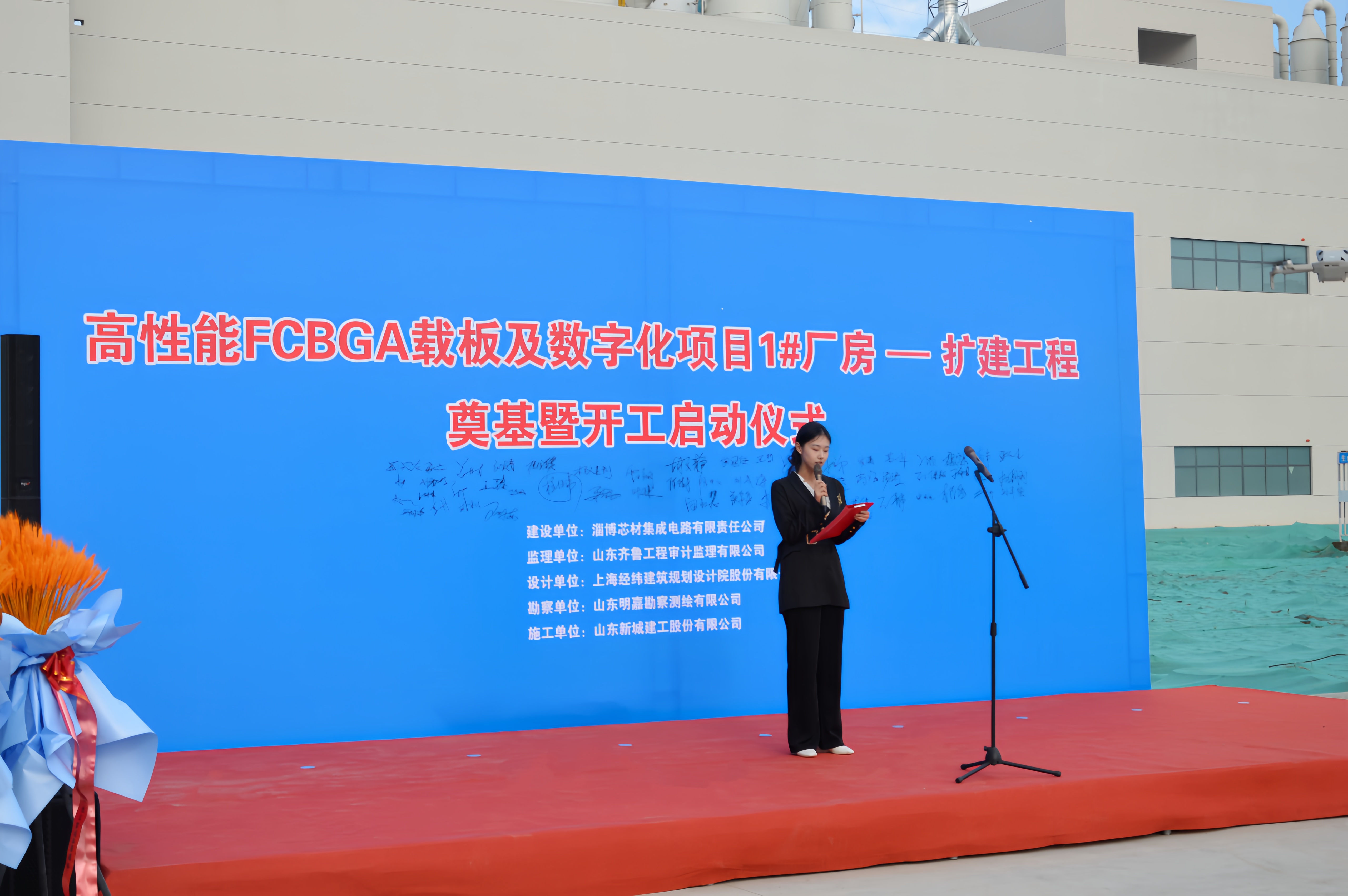 2025年9月26日上午8时18分,淄博芯材集成电路有限责任公司“高性能FCBGA载板及数字化项目1#厂房一扩建工程奠基暨开工启动仪式”在项目规划用地现场隆重举行。仪式以“奠基伟业,启航新篇,凝心聚力,共创辉煌”为主题,标志着这一重点产业项目正式启动,开启了淄博集成电路产业发展的新篇章。